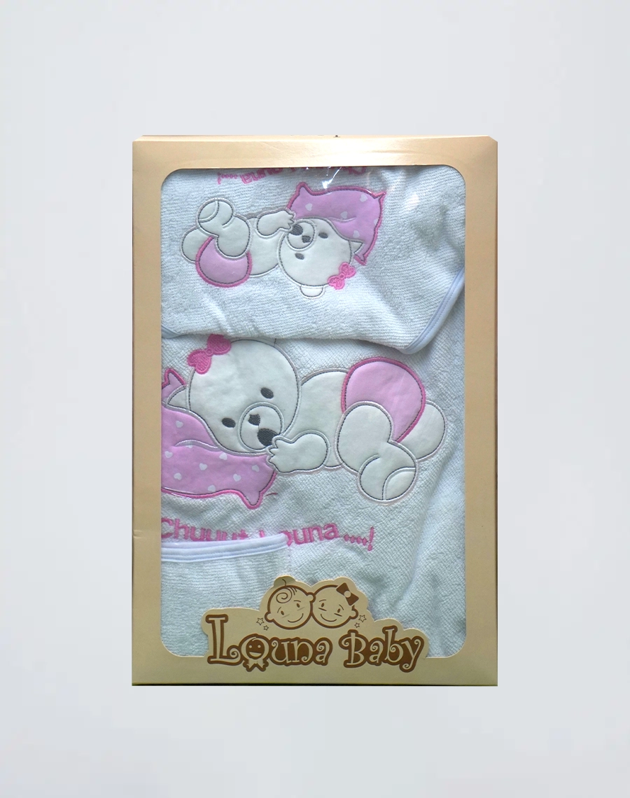 Cape de bain Ours rose